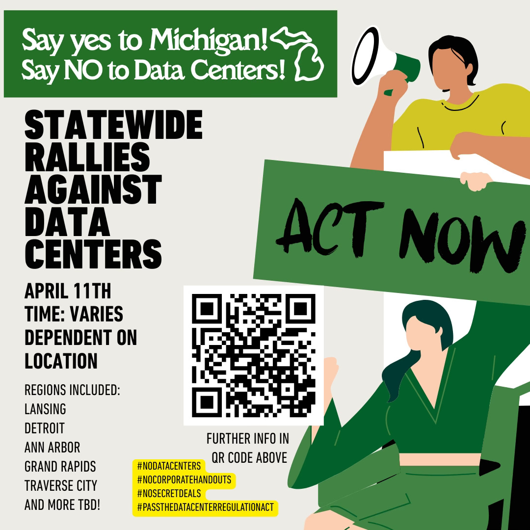 Meetings & EventsSay NO to Data CentersOpen Space Rally in TC April 11. Scan QR code for more details on FacebookAntrim County Democratic PartyApr 04, 2026SharePrevious